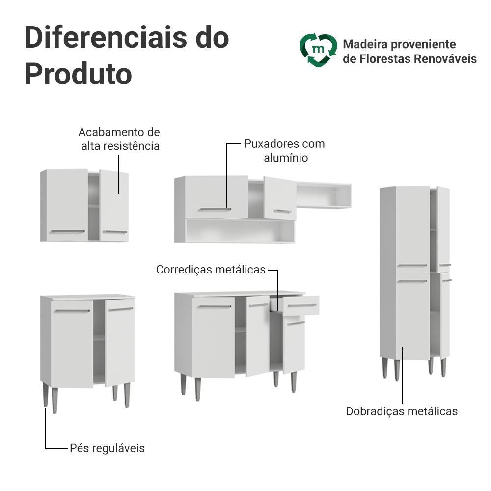Armário de Cozinha Completa 293cm Branco Emilly Madesa 01