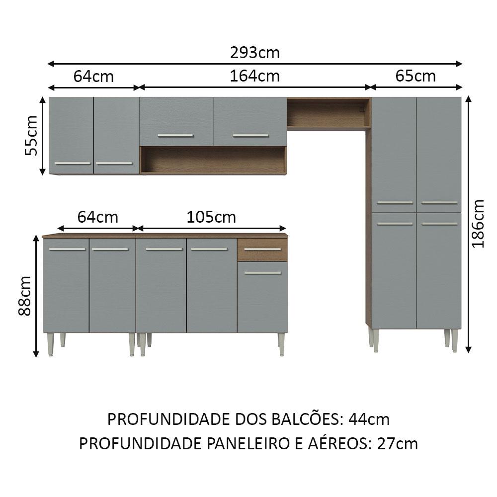 Armário de Cozinha Completa 293cm Rustic/Cinza Emilly Madesa 01