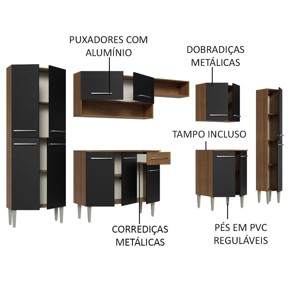 Armário de Cozinha Completa 325cm Preto/Rustic Emilly Joy Madesa