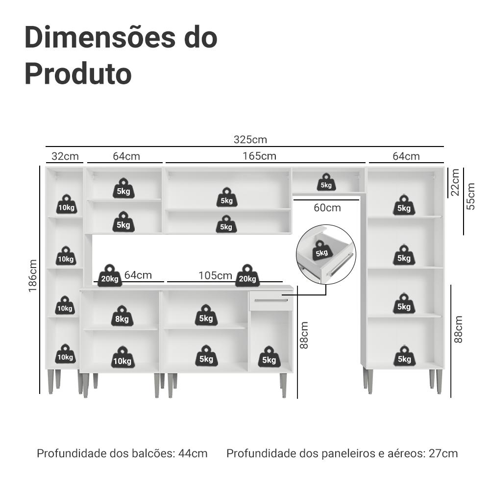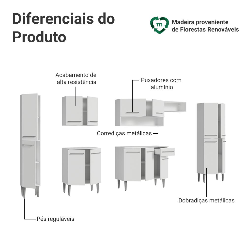 Armário de Cozinha Completa 325cm Branco Emilly Madesa 06