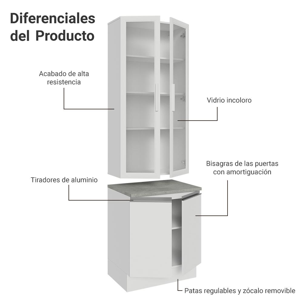 Kit Balcão + Cristaleira 70cm Branco Glamy Madesa 01
