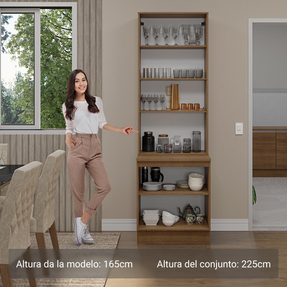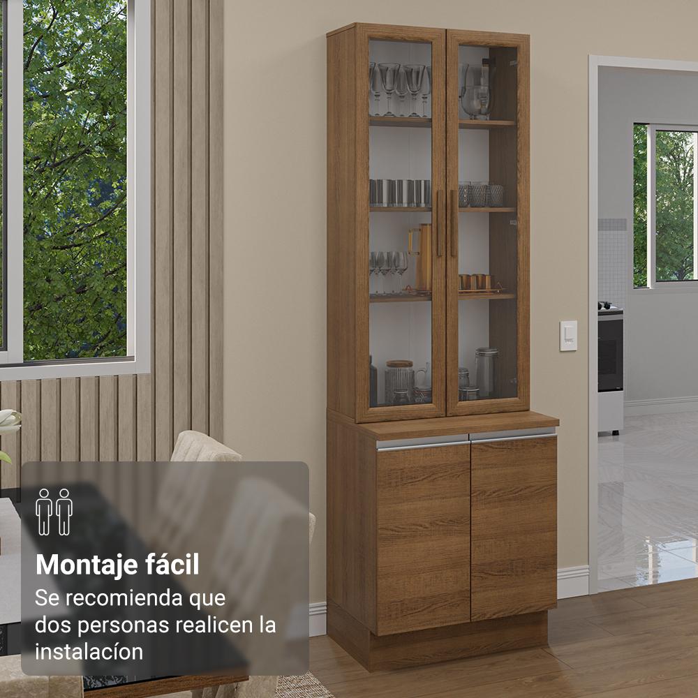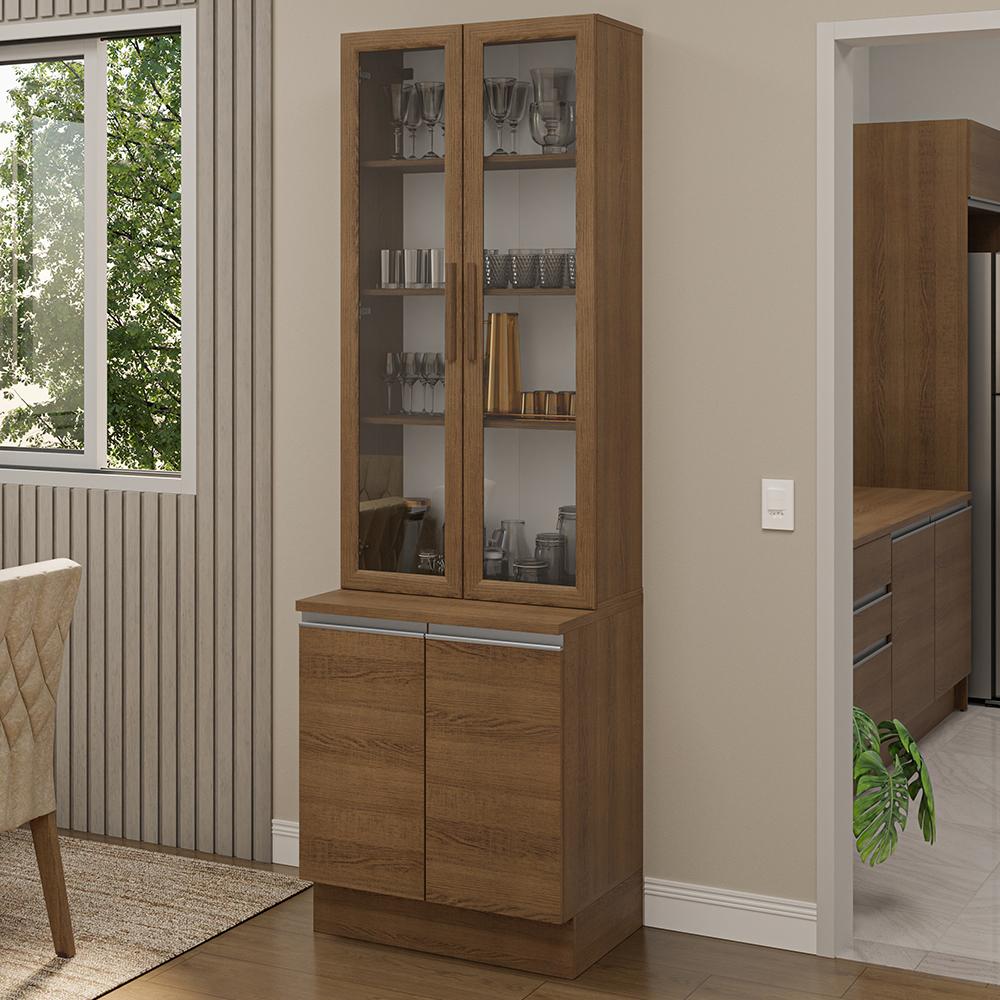 Este Kit com Balcão e Cristaleira da linha Glamy da Madesa é moderno e sofisticado, perfeito para sua sala de jantar ou cozinha.O móvel se destaca pelos detalhes de qualidade, como puxadores em alumínio no balcão, portas com amortecimento para um fechamento suave e pés reguláveis em PVC.Muito elegante, a cristaleira possui duas portas de vidro e amplo espaço interno para acomodar louças, copos e outros itens de forma organizada.O balcão é super prático e o espaço interno é ótimo, o que facilita a organização dos utensílios.Este conjunto ainda pode ser complementado com outros módulos da linha Glamy da Madesa. Para completar, o acabamento em amadeirado Rustic garante um visual sofisticado ao ambiente.Medidas totais:- 225 cm de altura- 70 cm de largura- 52 cm de profundidade no balcão e 31 cm na cristaleiraItens inclusos:- Uma (1) Cristaleira com duas (2) portas- Um (1) Balcão com duas (2) portas e tampoCódigo do produto: GRGL0700015ZObs.:- A cristaleira não acompanha pés nem kit para suspender na parede. Deve ser instalada sobre o balcão e fixada na parede.- As imagens são meramente ilustrativas, os eletros e a decoração não acompanham o produtoA Madesa se dedica à sustentabilidade com várias iniciativas: temos uma usina própria para gerar energia que abastece uma de nossas fábricas. Selecionamos nossos fornecedores, priorizando aqueles que possuem um compromisso com a sustentabilidade e proteção do meio ambiente. Todo o plástico utilizado no setor produtivo é proveniente de reciclagem e as suas sobras são encaminhadas ao fornecedor que os recicla. Também investimos no desenvolvimento contínuo de nossos colaboradores e em ações educacionais que beneficiem a comunidade.