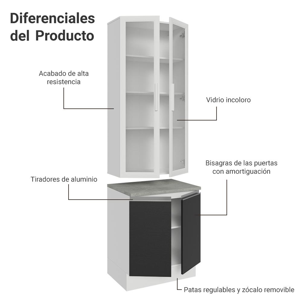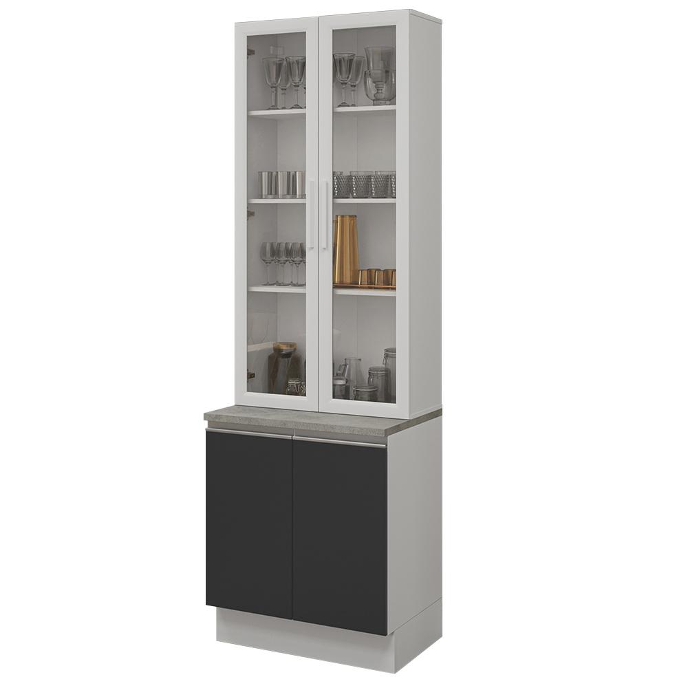 Kit Balcão + Cristaleira 70cm Branco/Preto Glamy Madesa 01