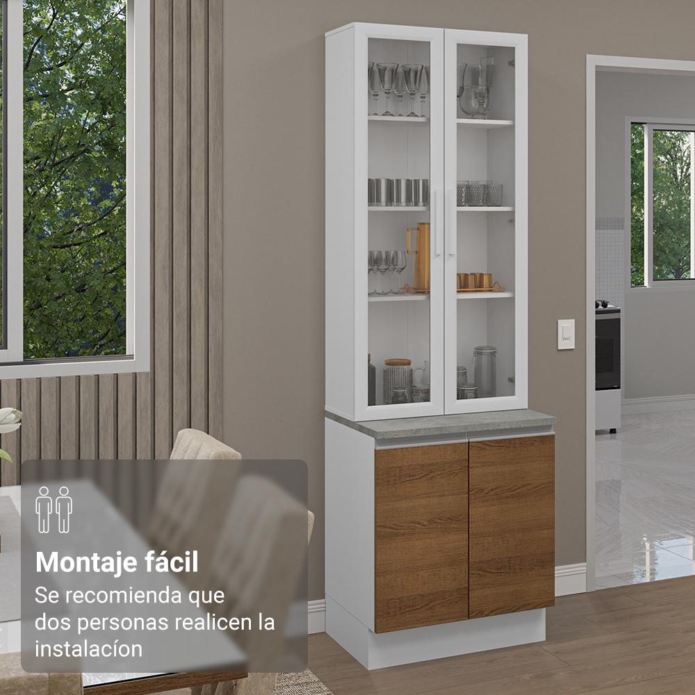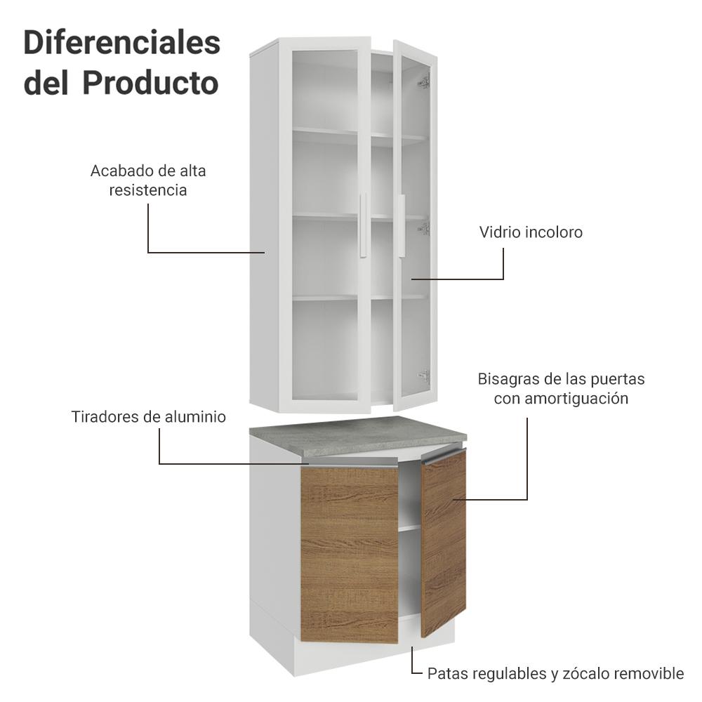 Kit Balcão + Cristaleira 70cm Branco/Rustic Glamy Madesa 01