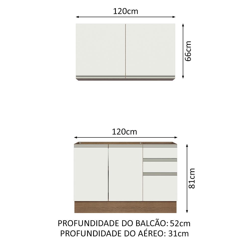 Armário de Cozinha Compacta 120cm Rustic/Branco Glamy Madesa 03