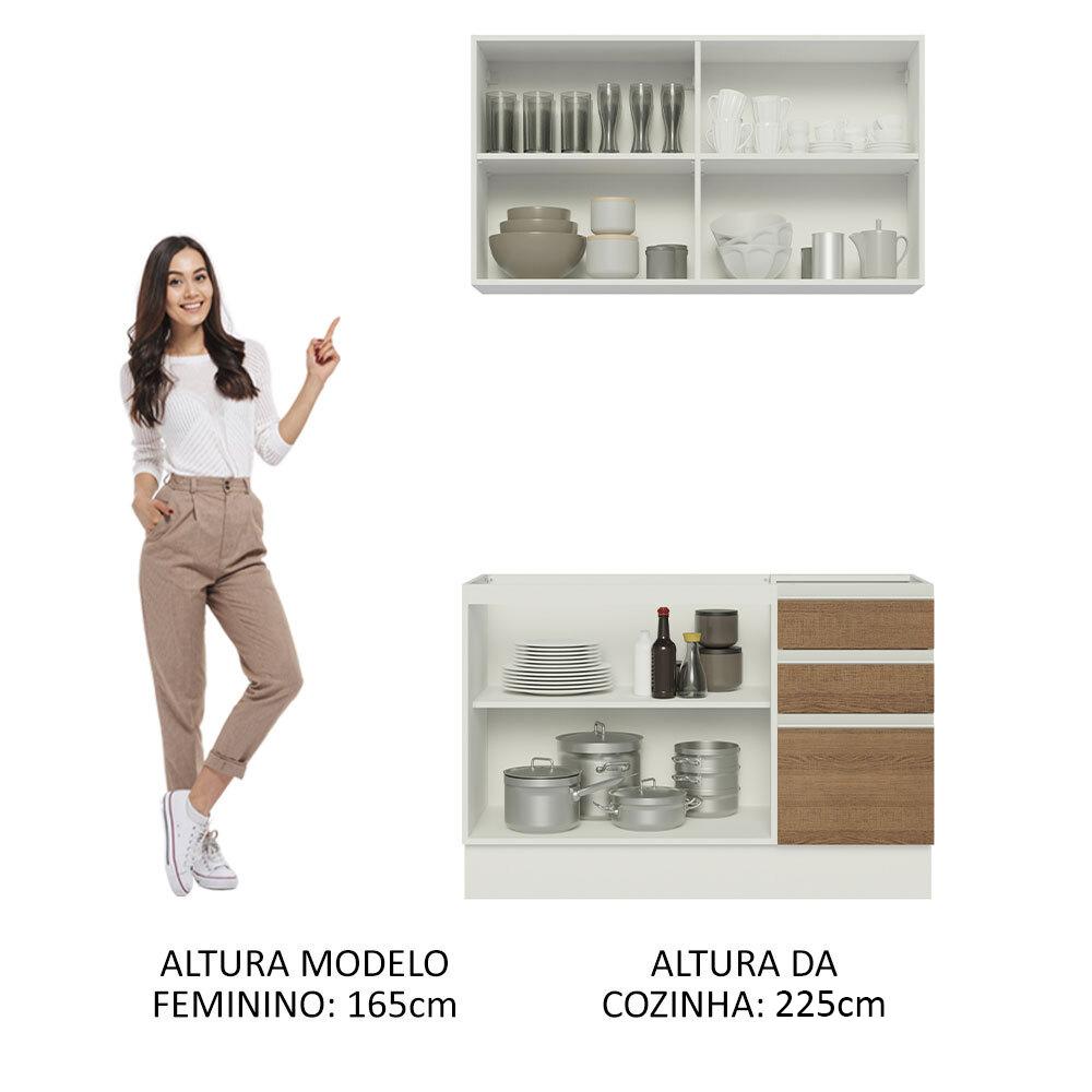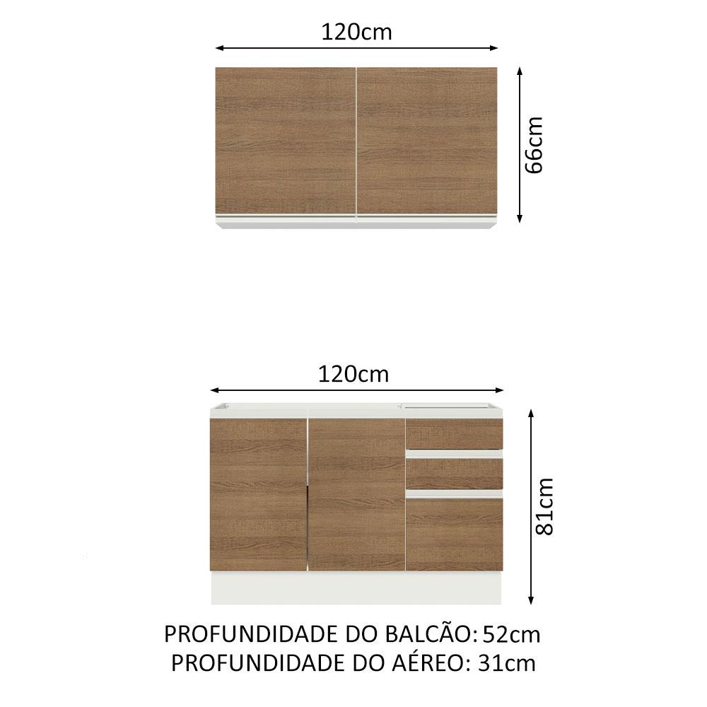 Armário de Cozinha Compacta 120cm Branco/Rustic Glamy Madesa 03