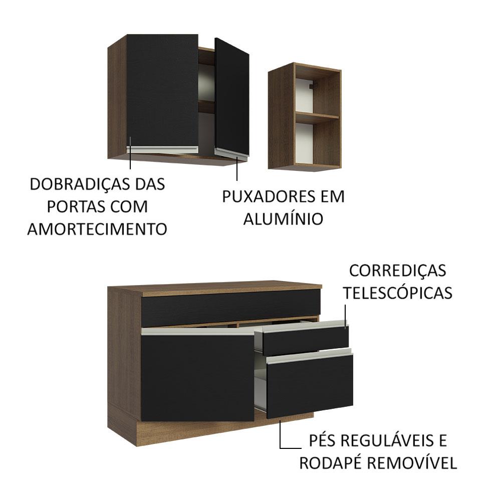Armário de Cozinha Compacta 120cm Rustic/Preto Glamy Madesa 08