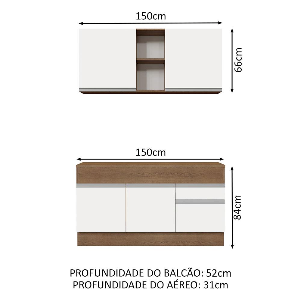 Armário de Cozinha Compacta 150cm Rustic/Branco Glamy Madesa 01