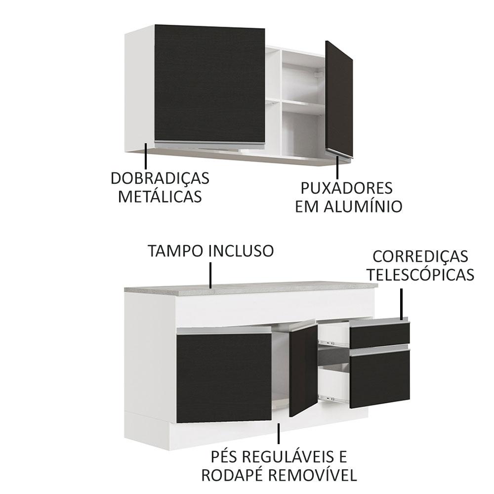 Armário de Cozinha Compacta 150cm Branco/Preto Glamy Madesa 01