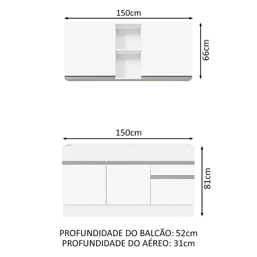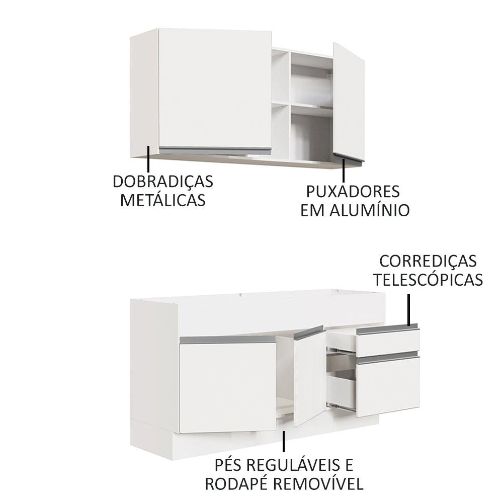 Armário de Cozinha Compacta 150cm Branco Glamy Madesa 02