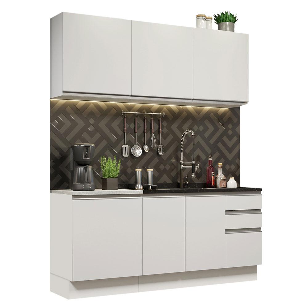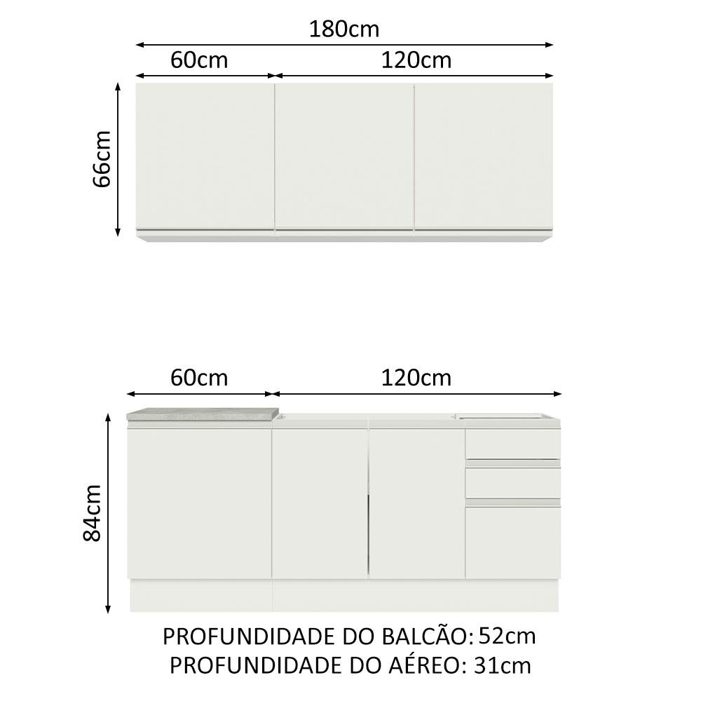 Cozinha Compacta Madesa Glamy 180005 com Armário e Balcão (Sem Tampo e Pia) - Branco