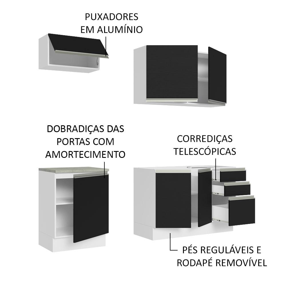 Cozinha Compacta Madesa Glamy 180007 com Armário e Balcão (Sem Tampo e Pia) - Branco/Preto
