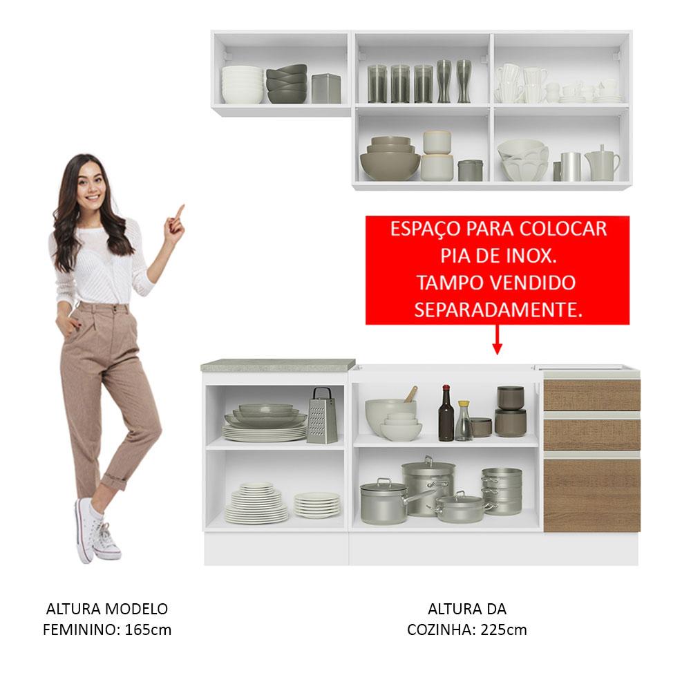Cozinha Compacta Madesa Glamy 180007 com Armário e Balcão (Sem Tampo e Pia) - Branco/Rustic