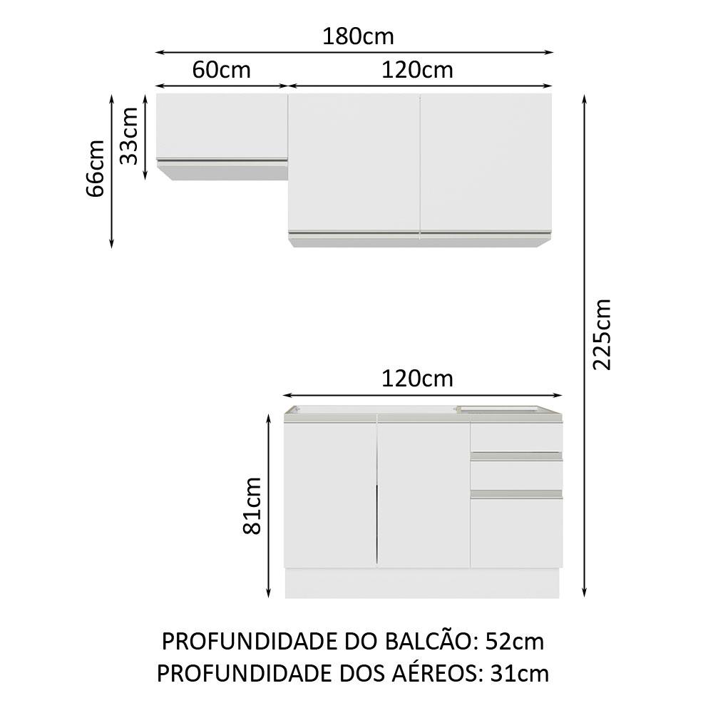 Armário de Cozinha Compacta 180cm Branco Glamy Madesa 09