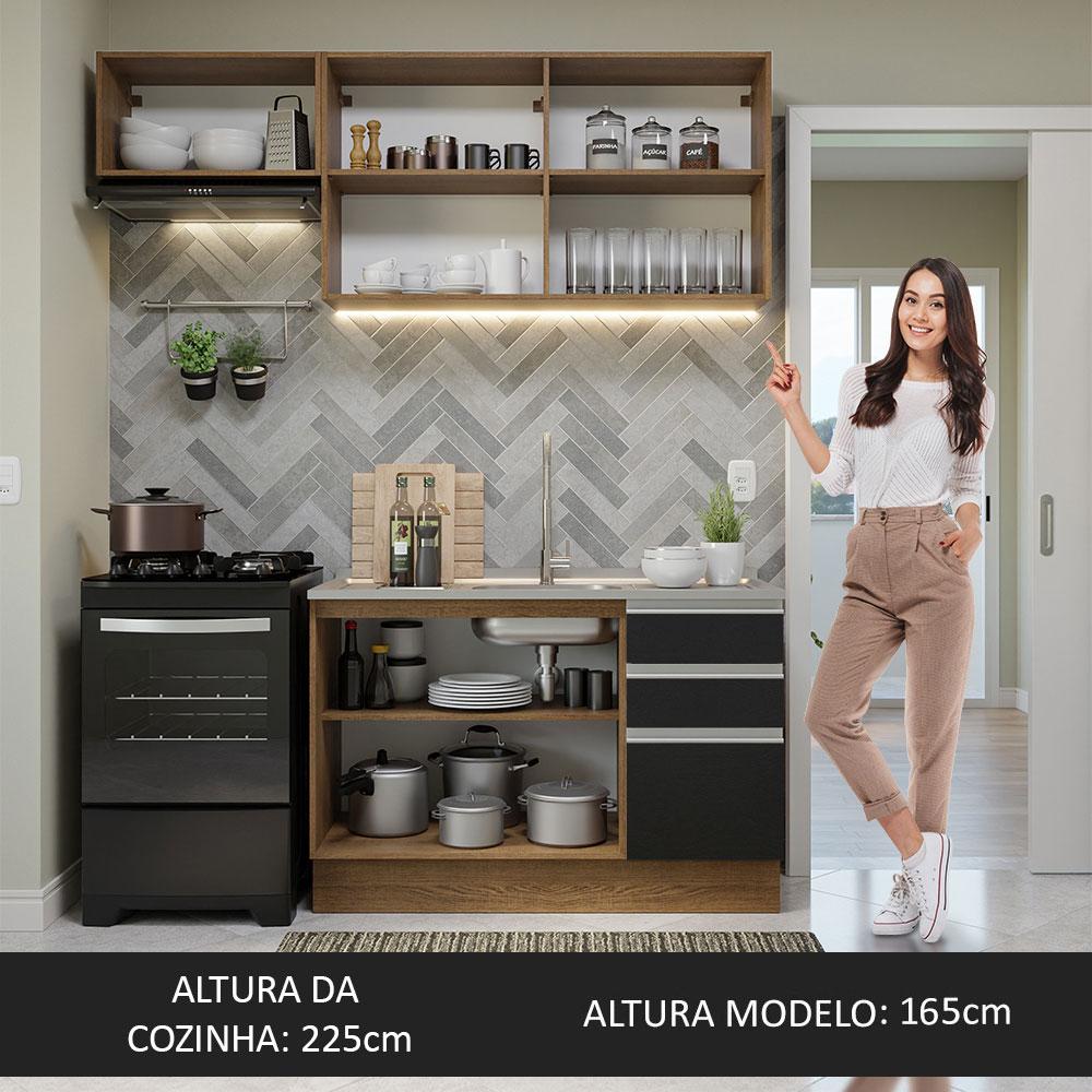 Armário de Cozinha Compacta 180cm Rustic/Preto Glamy Madesa 09