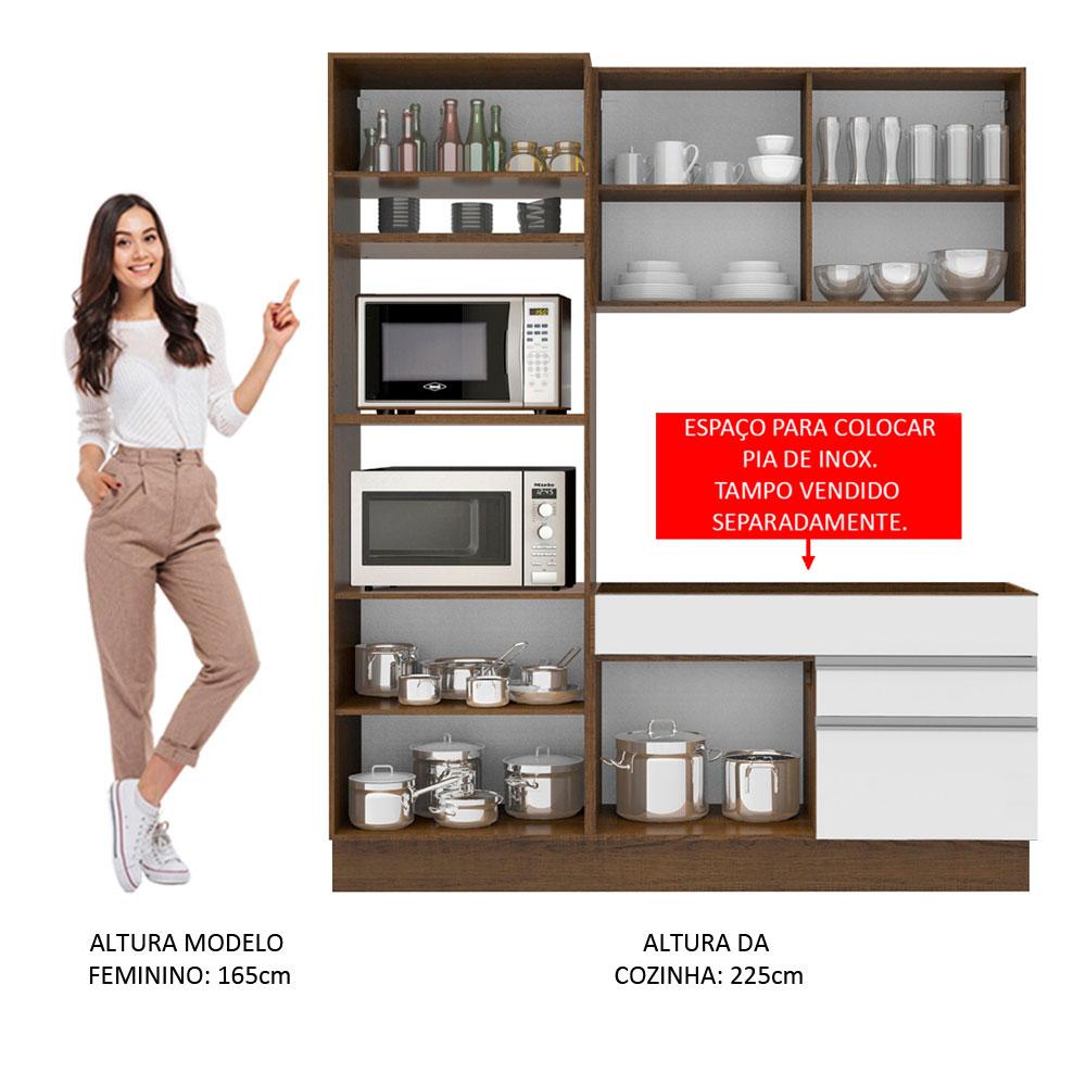 Armário de Cozinha Compacta 190cm Rustic/Branco/Crema Helen Madesa 02