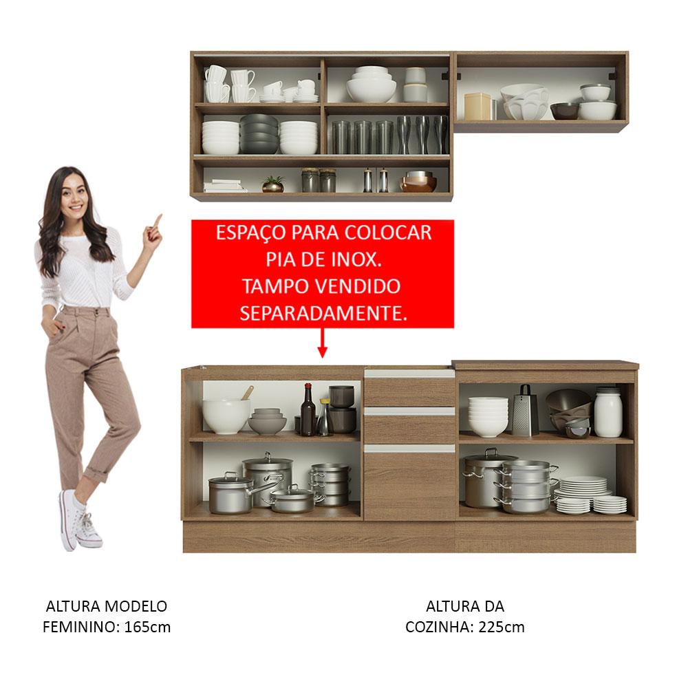 Cozinha Compacta Madesa Glamy 200003 com Armário e Balcão (Sem Tampo e Pia) - Rustic