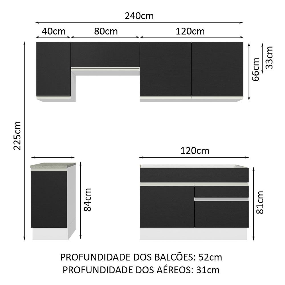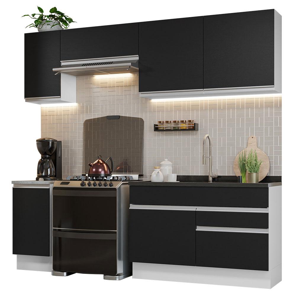 Armário de Cozinha Completa 240cm Branco/Preto Glamy Madesa 07