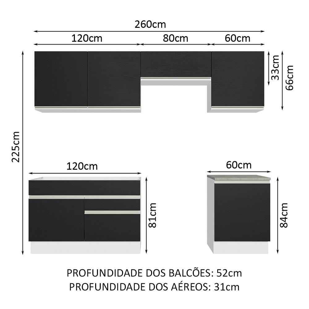 Armário de Cozinha Completa 260cm Branco/Preto Glamy Madesa 04