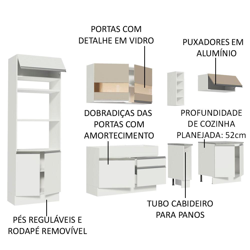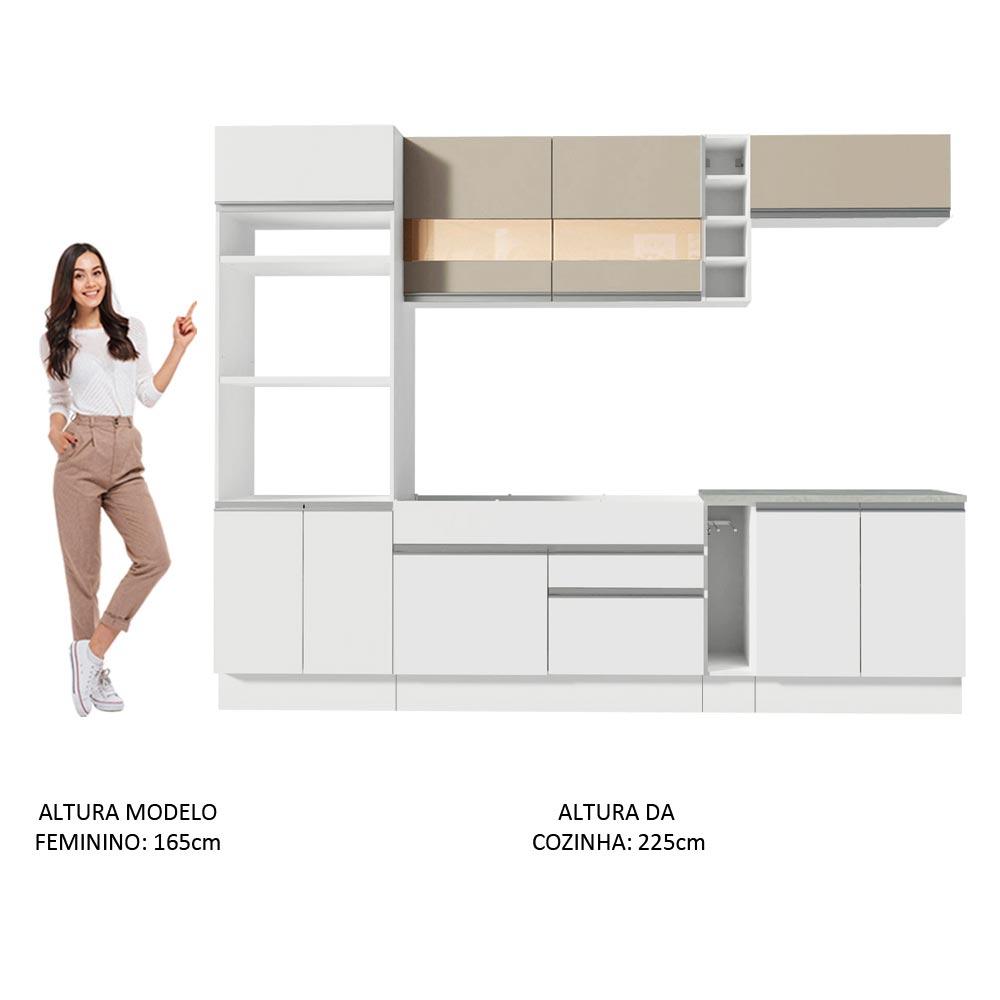 Cozinha Completa Madesa Vicenza com Armário e Balcão + Tampo - Branco/Branco/Crema