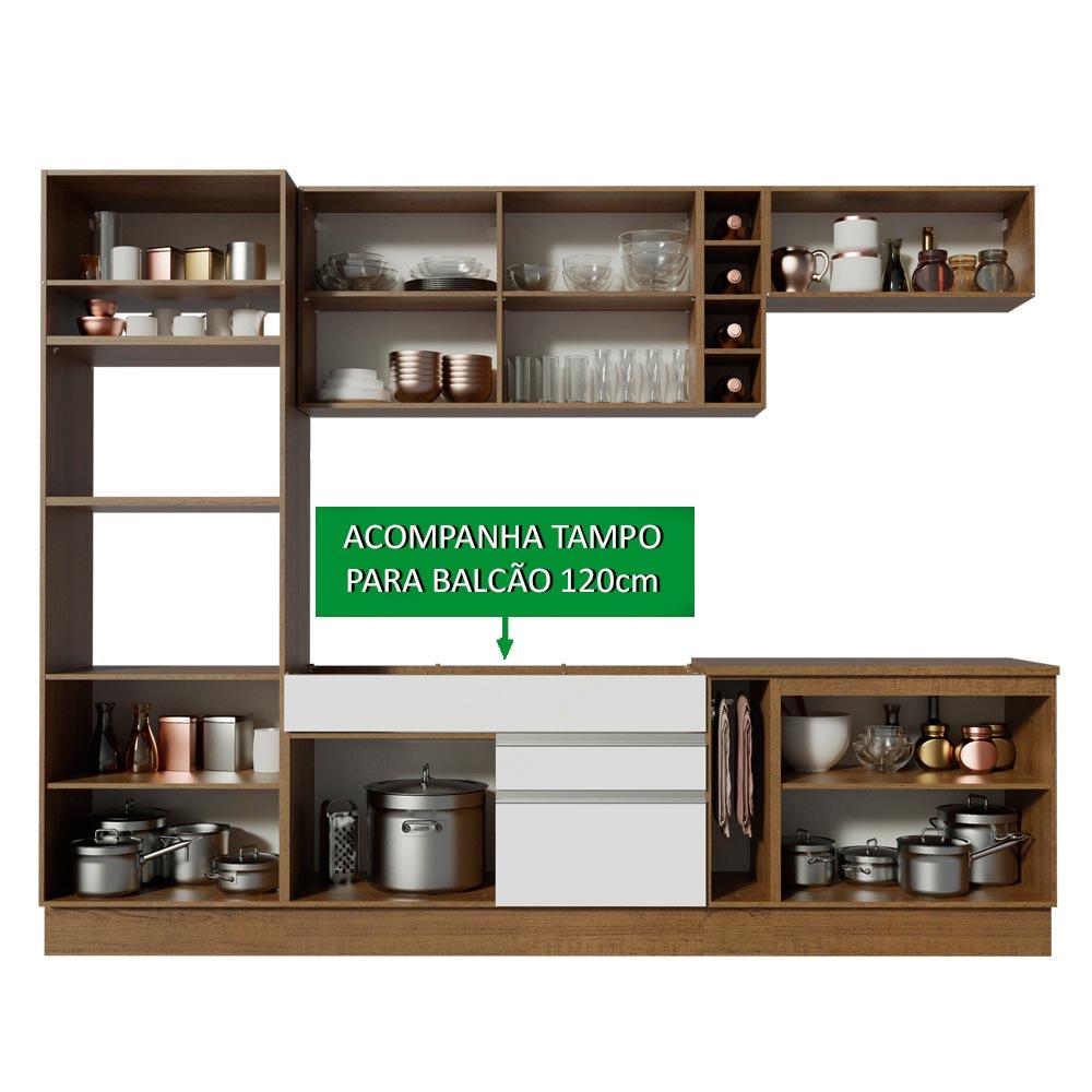 Cozinha Completa Madesa Vicenza com Armário e Balcão + Tampo - Rustic/Branco/Crema