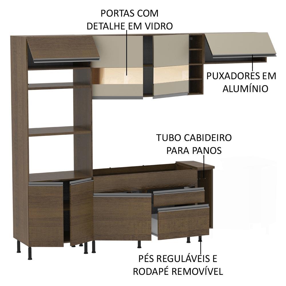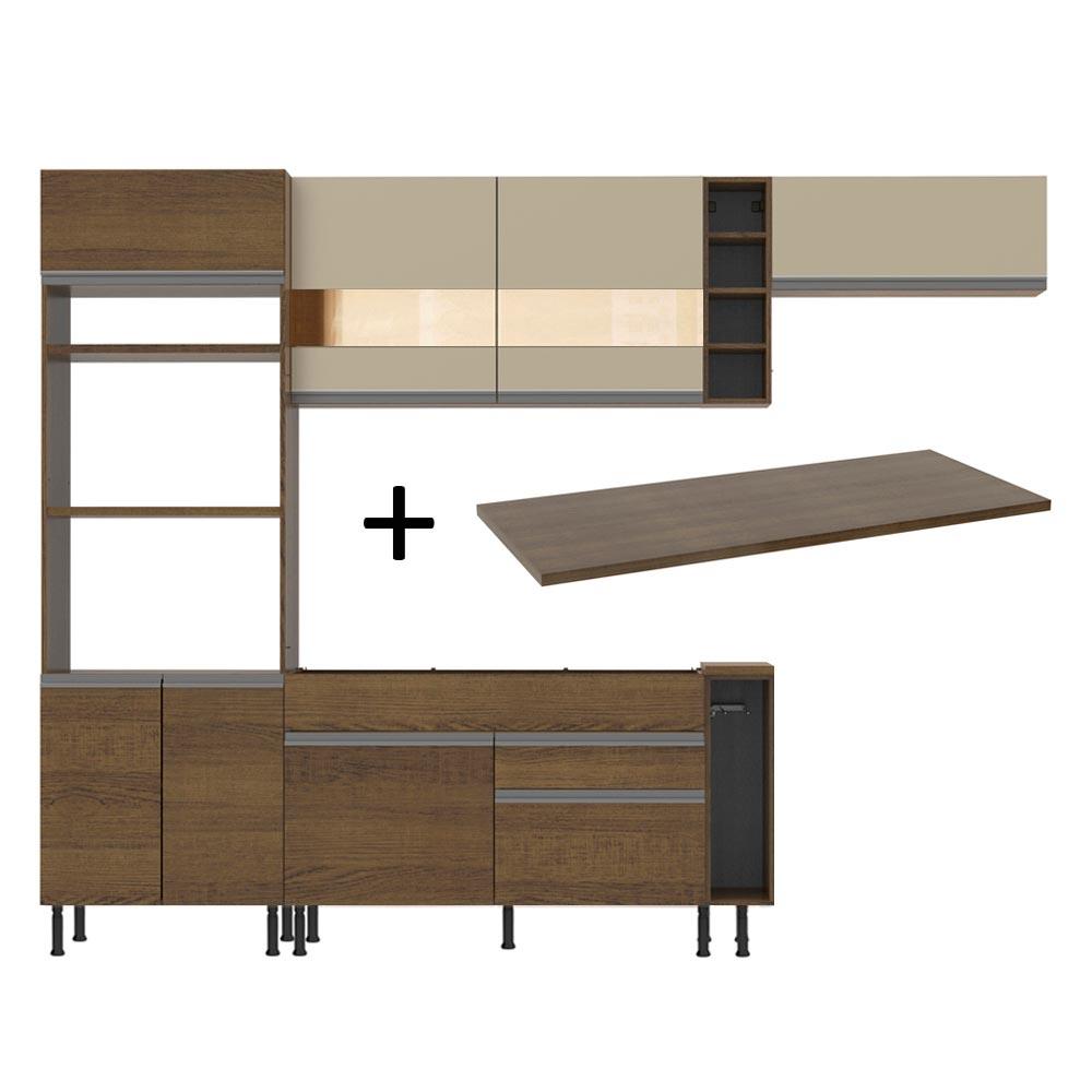 Cozinha Completa Madesa Vicenza com Armário e Balcão + Tampo - Rustic/Rustic/Crema