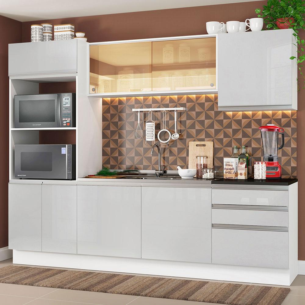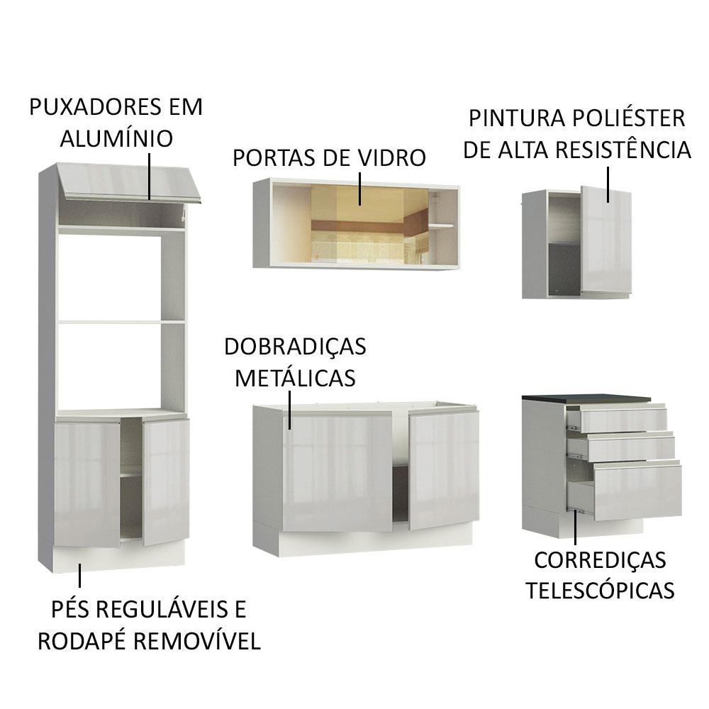 Cozinha Completa Madesa 100% MDF Acordes com Armário e Balcão Portas Branco Brilho (Sem Tampo e Pia)