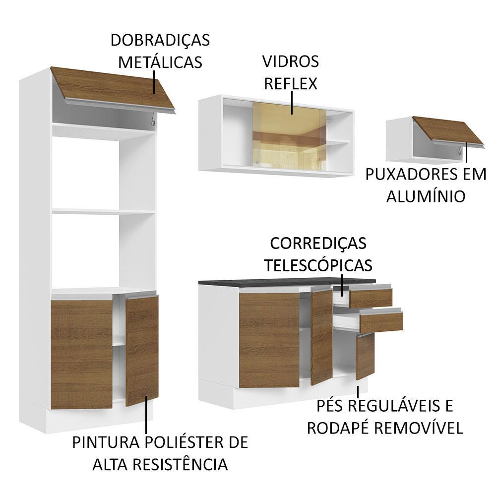 Cozinha Completa 100% MDF Madesa Acordes 250004 com Armário e Balcão (Com Tampo) - Branco/Rustic