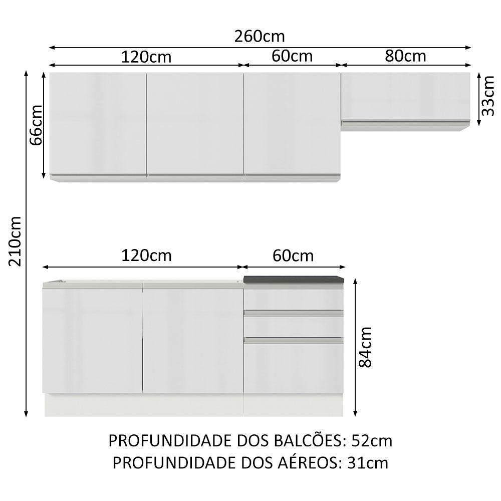Cozinha Completa 100% MDF Madesa Acordes 260003 com Armário e Balcão - Frentes Branco Brilho