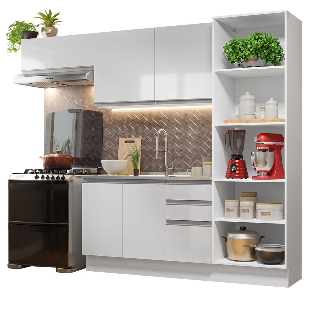 Armário de Cozinha Completa 260cm 100% MDF Frentes Branco Brilho Acordes Madesa 04