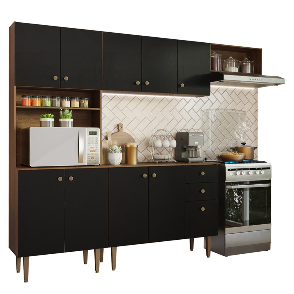 Armário de Cozinha Compacta 235cm Rustic/Preto Gourmet Madesa 02