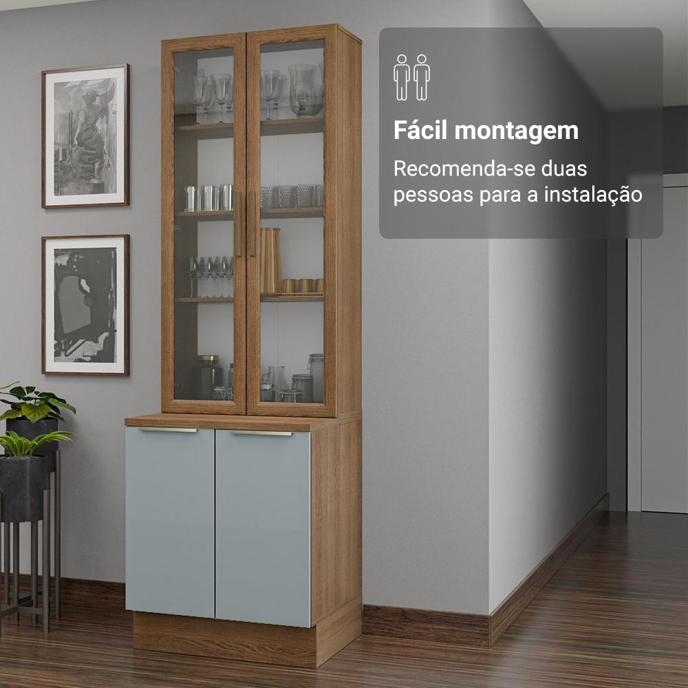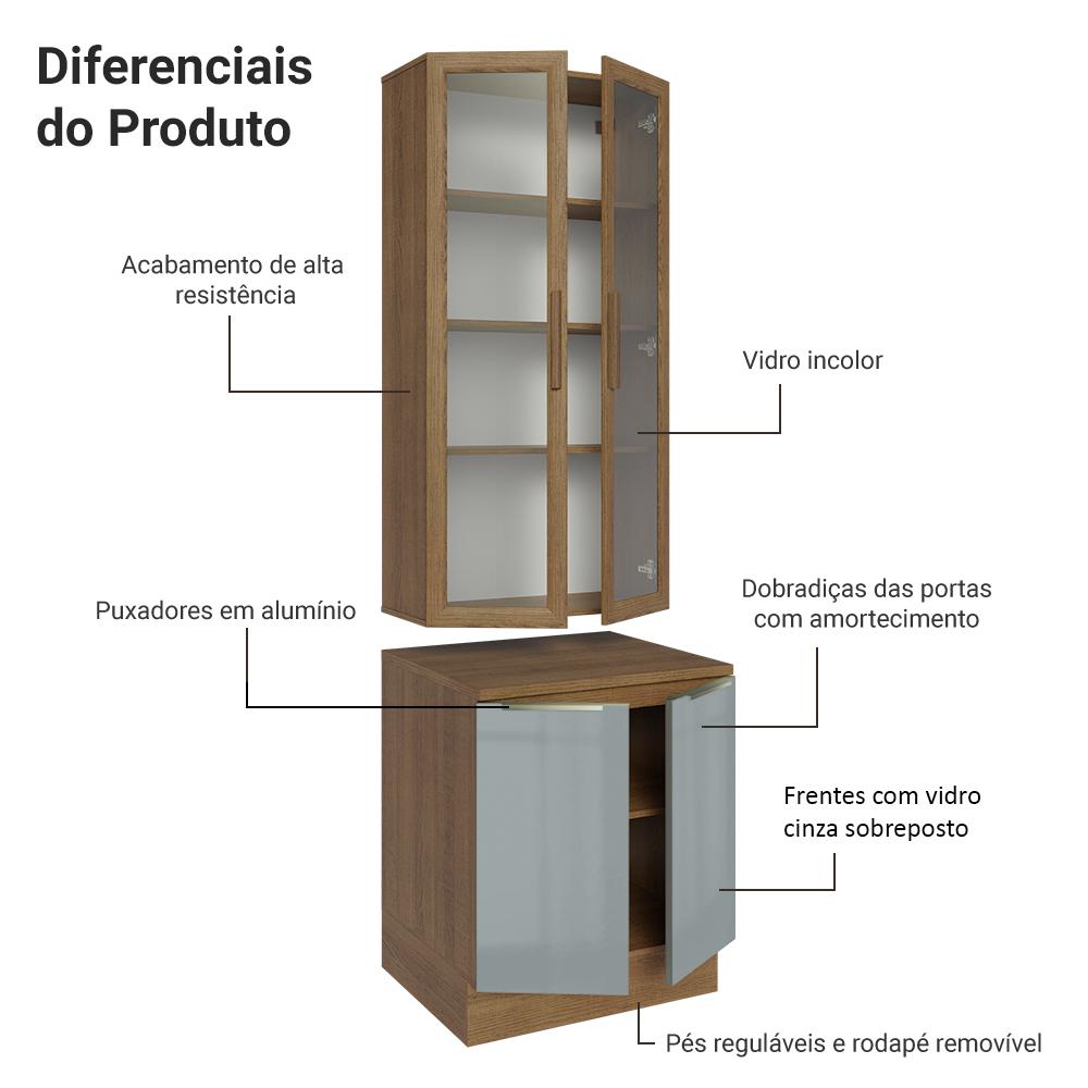 Kit Balcão + Cristaleira 70cm Rustic/Cinza Lux Madesa 01