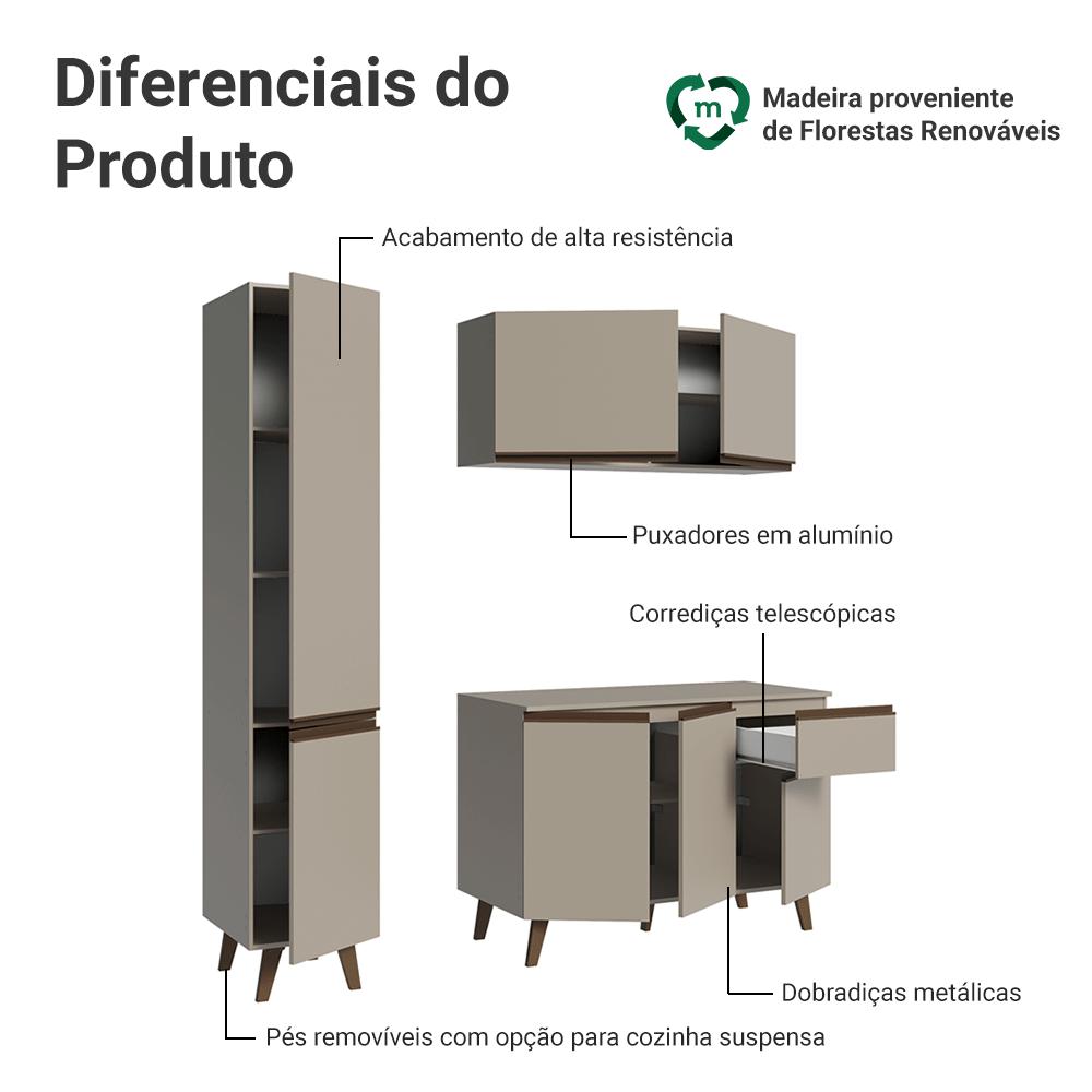 Armário de Cozinha Compacta 160 cm Crema Nice Madesa 01