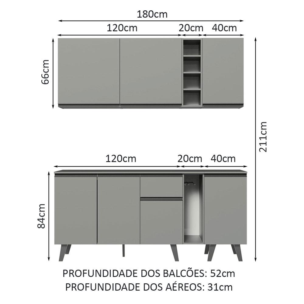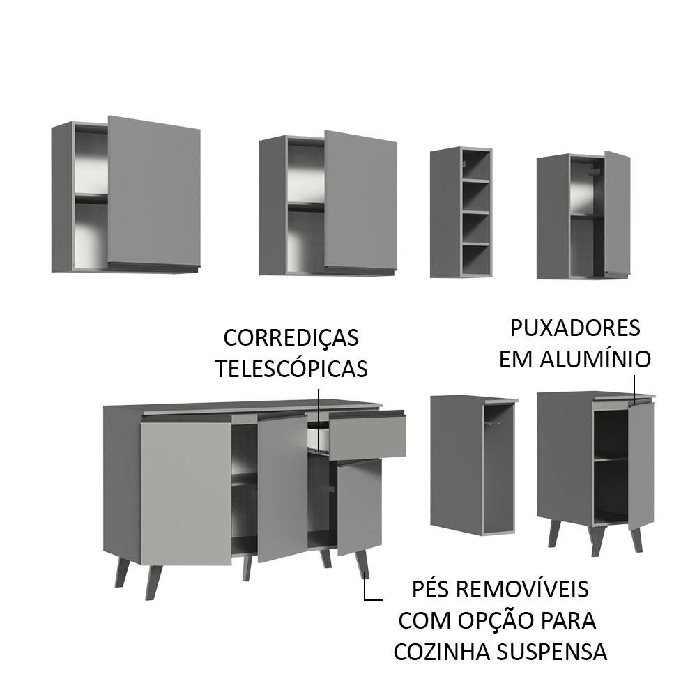 Armário de Cozinha Completa 180cm Cinza Nice Madesa 01