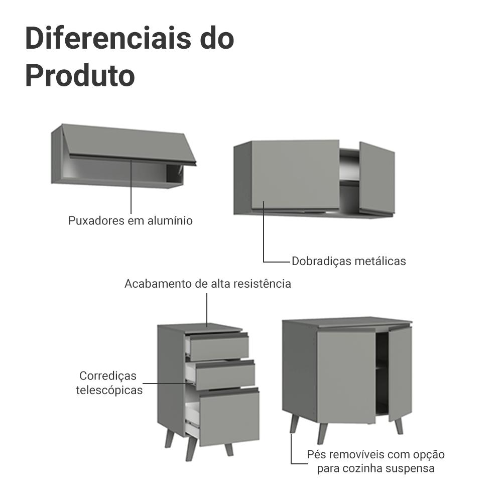 Armário de Cozinha Compacta 200cm Cinza Nice Madesa 06