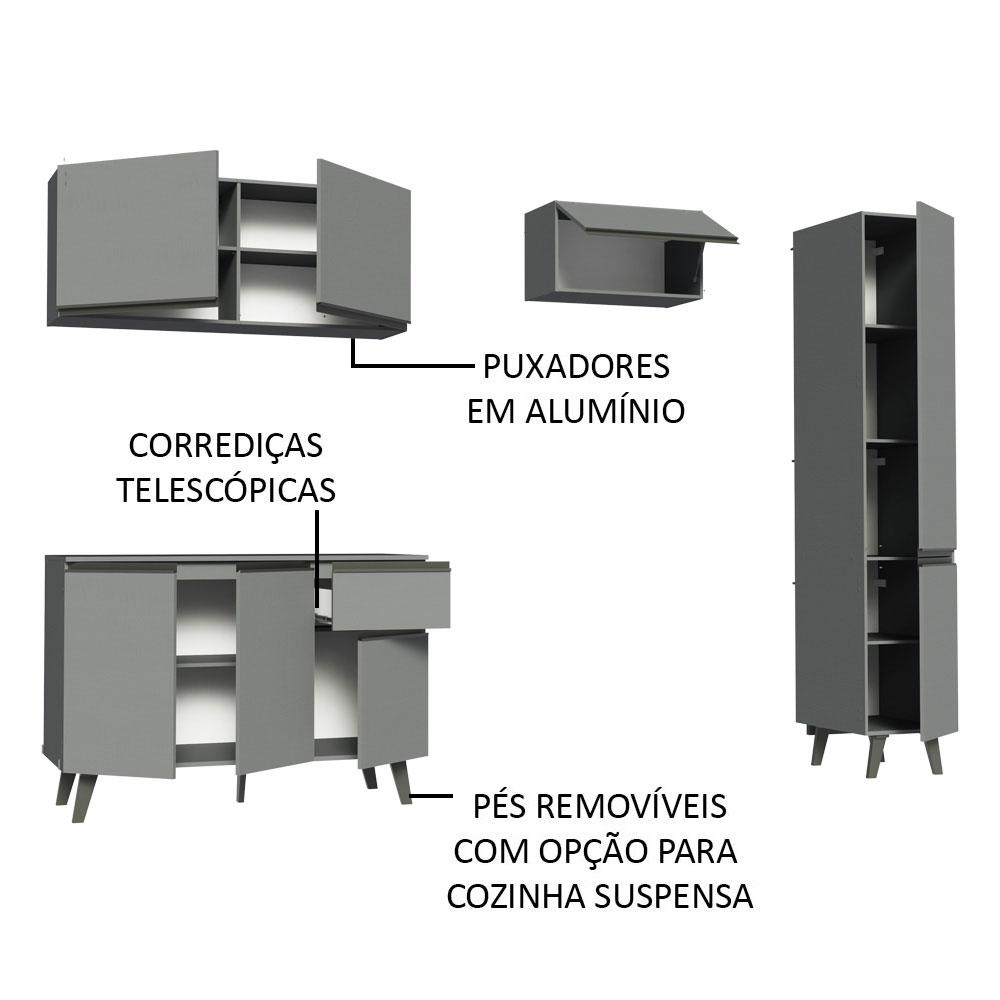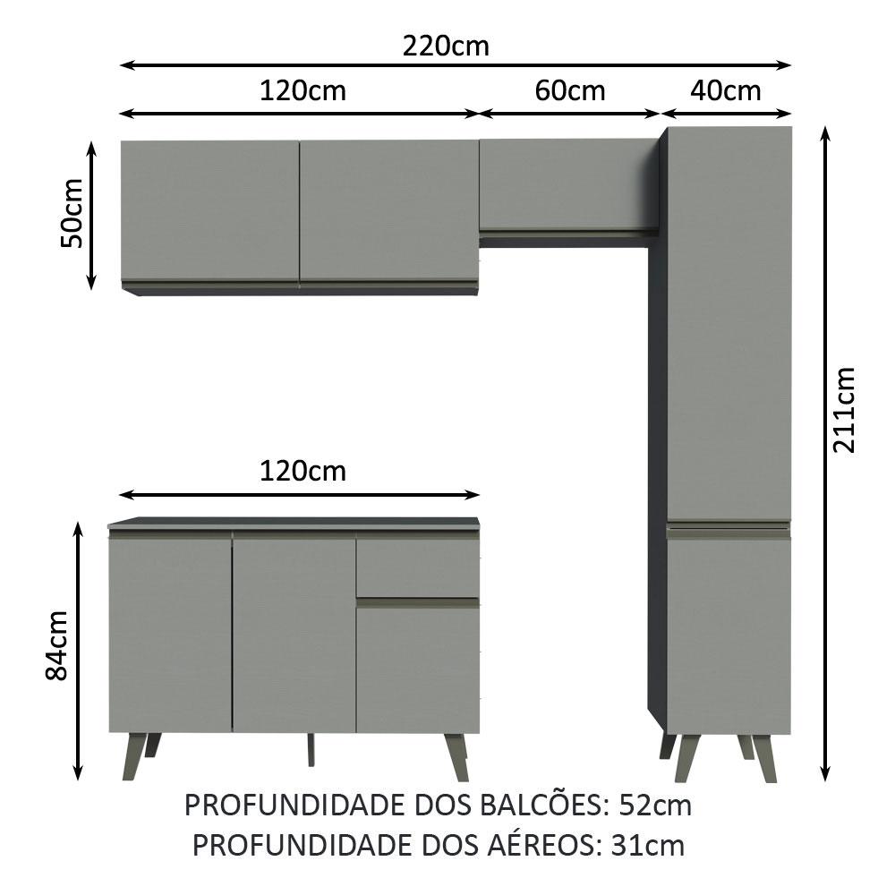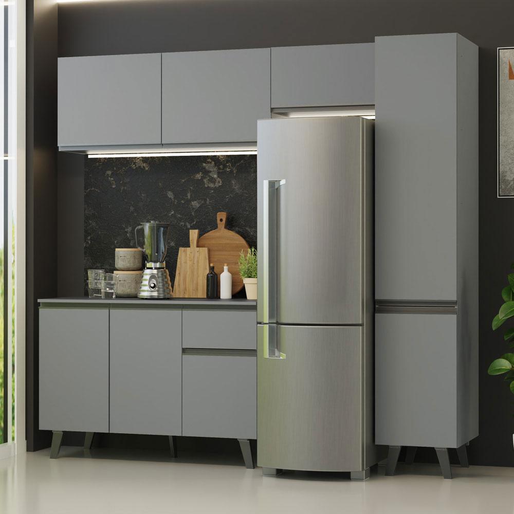 Armário de Cozinha Completa 220cm Cinza Nice Madesa 03