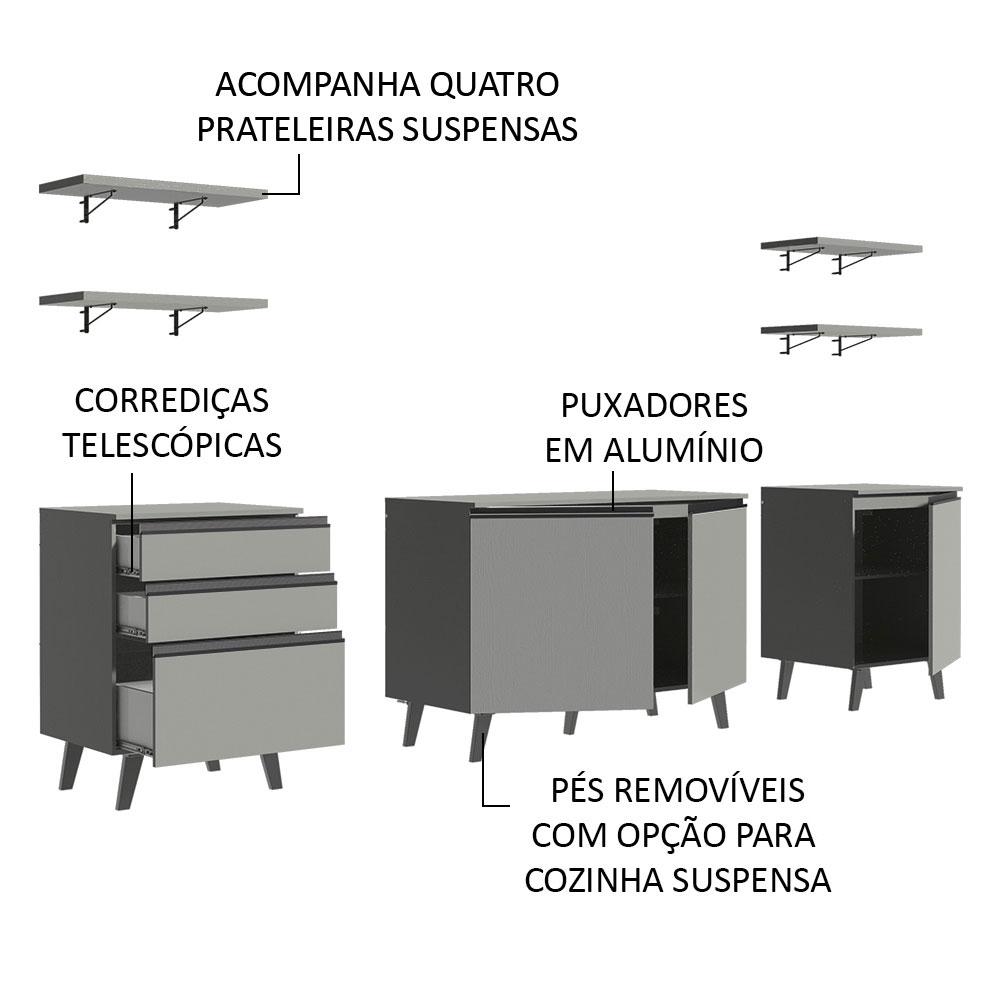 Armário de Cozinha Compacta 240cm Cinza Nice Madesa 01