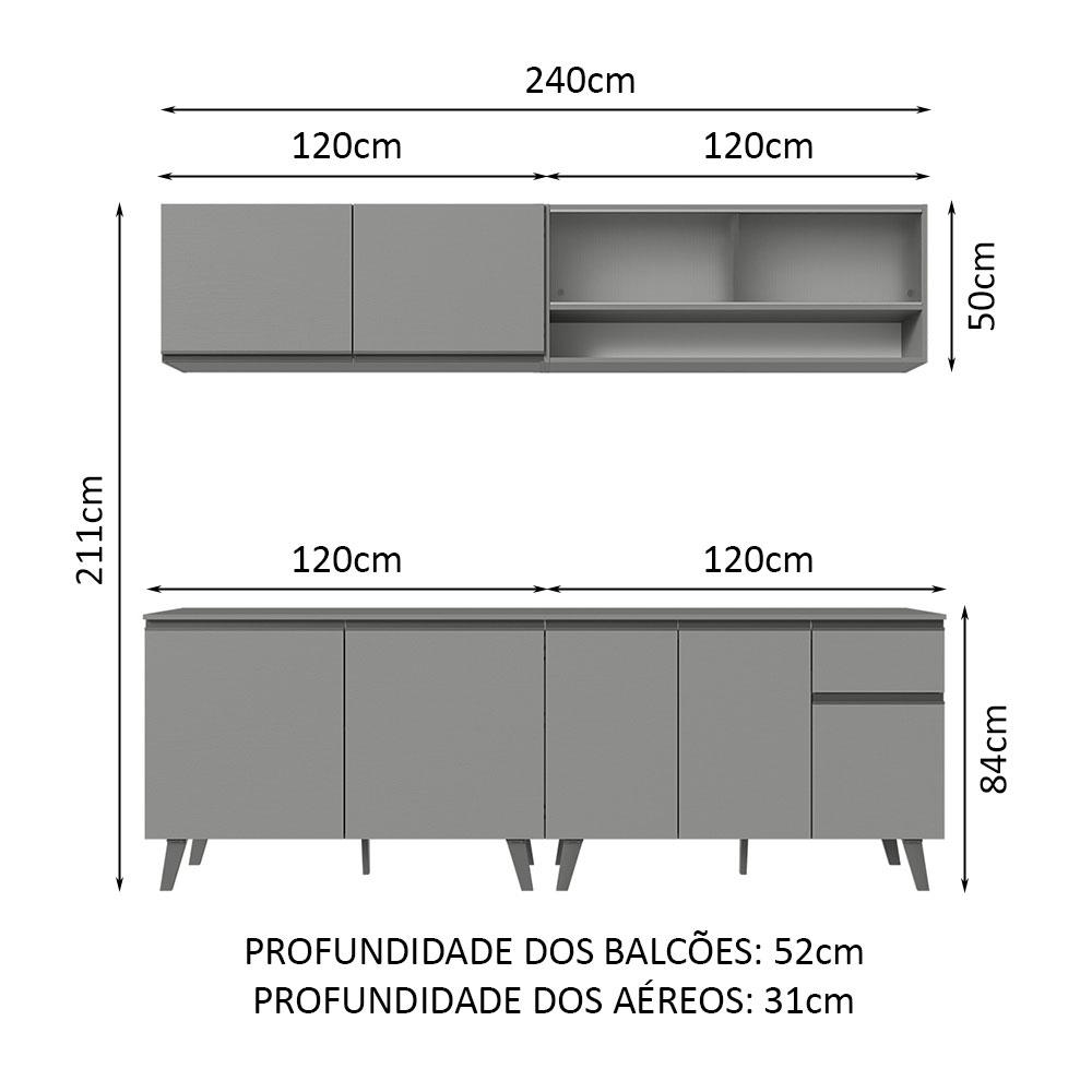 Armário de Cozinha Completa 240cm Cinza Nice Madesa 02