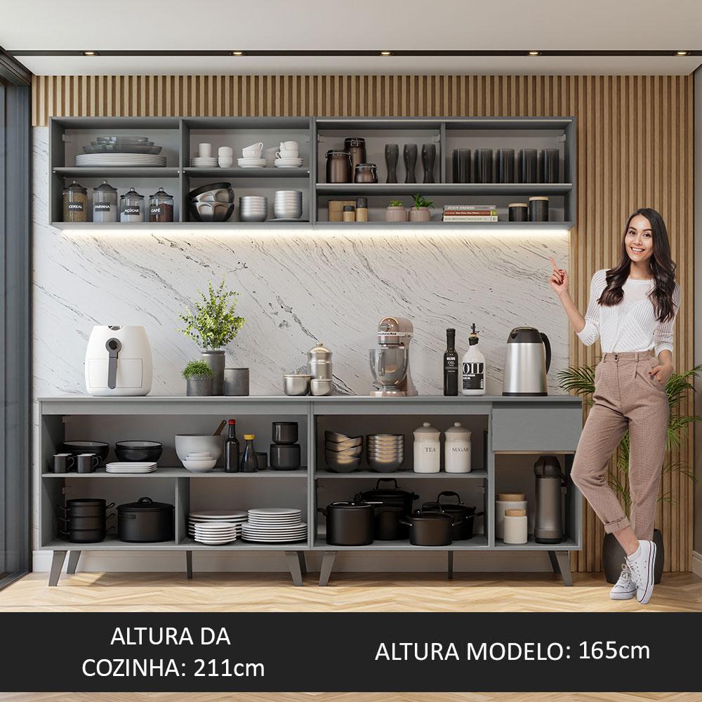 Armário de Cozinha Completa 240cm Cinza Nice Madesa 03