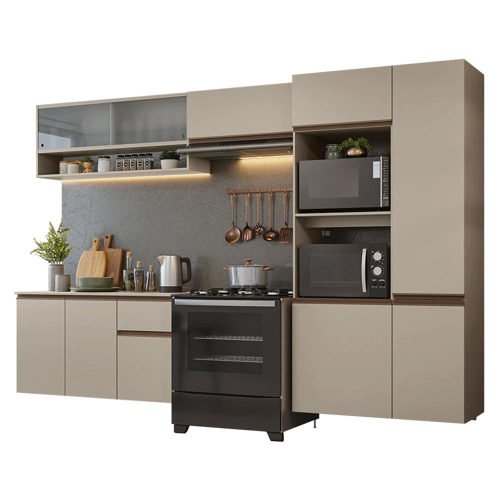 Armário de Cozinha Completa 300 cm Suspenso Crema Nice Madesa 06