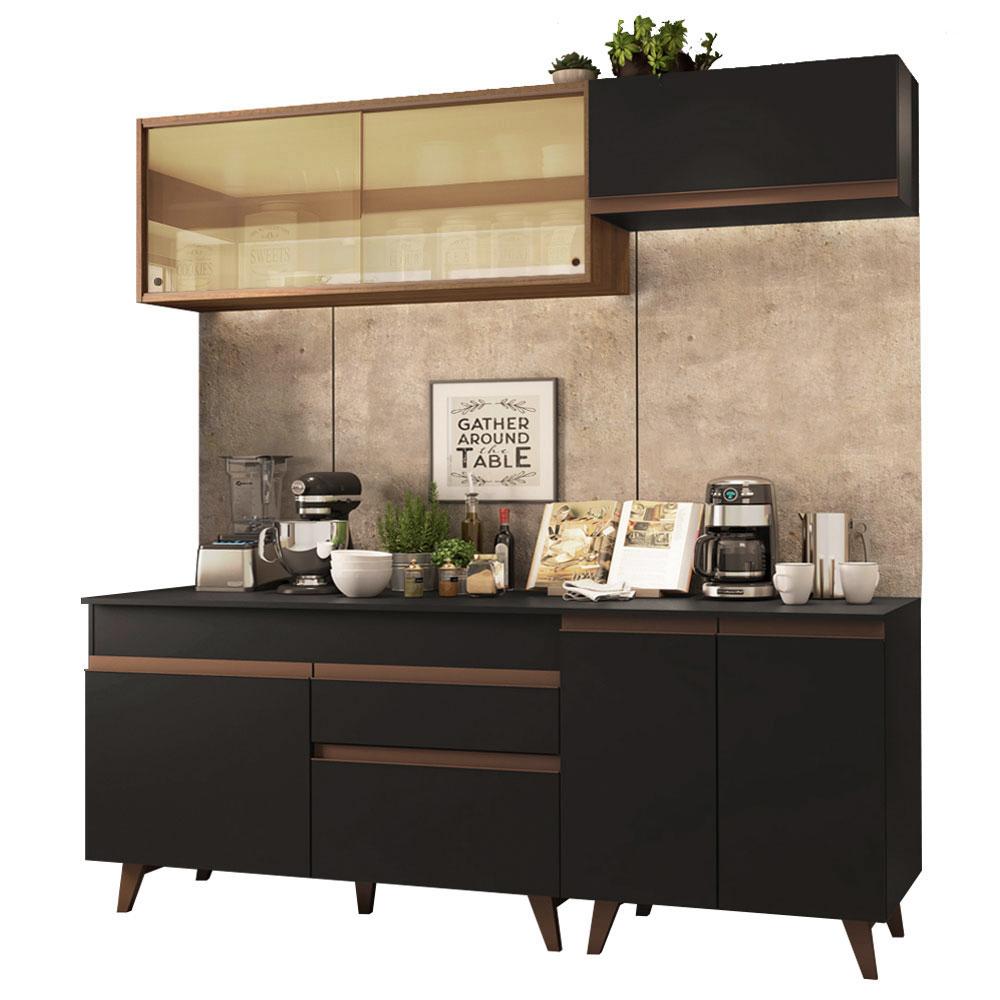 Cozinha Compacta Madesa Reims 190001 com Armário e Balcão - Preto/Rustic