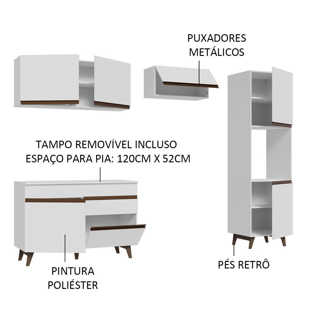 Armário de Cozinha Completa 250cm Branco Reims Madesa 06