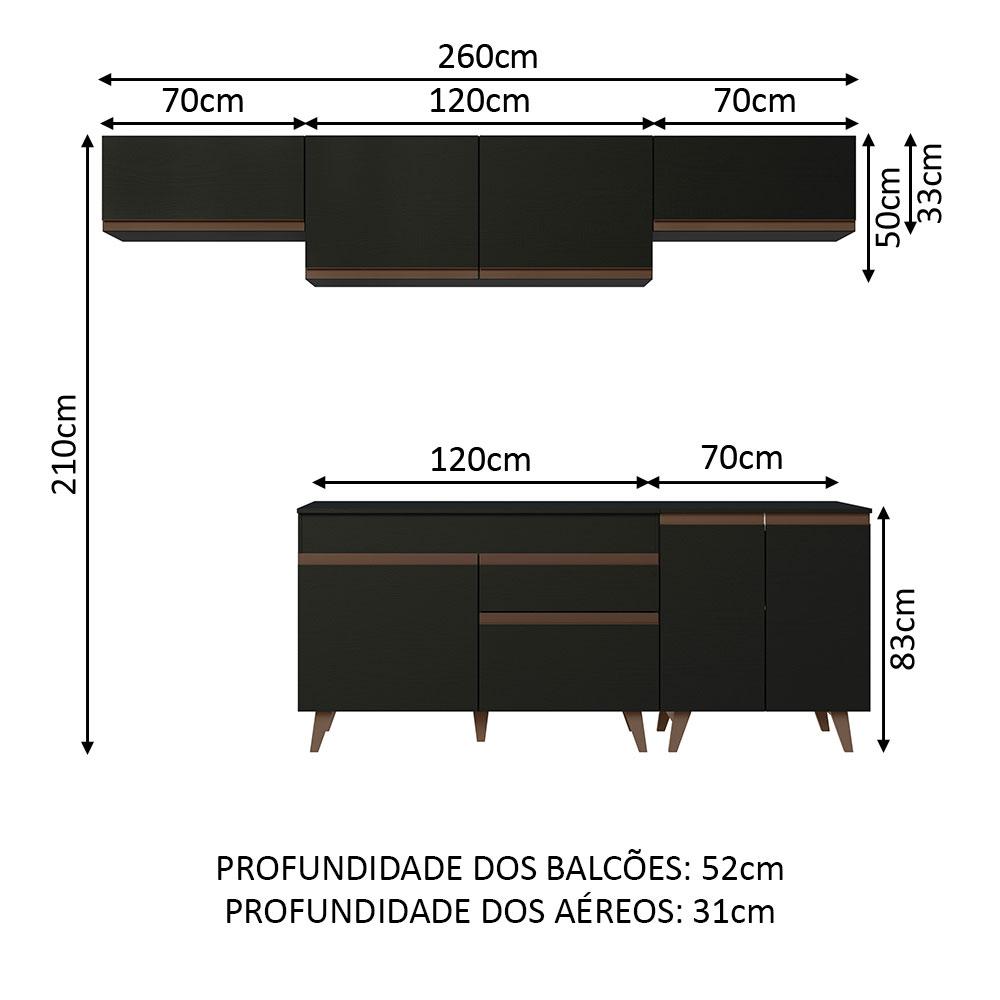 Armário de Cozinha Completa 260cm Preto Reims Madesa 10
