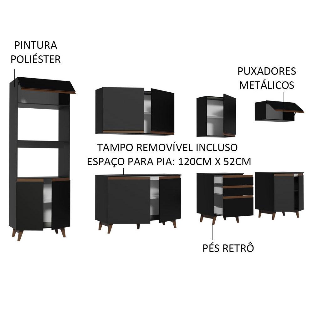 Cozinha Completa Madesa Reims 320002 com Armário e Balcão - Preto
