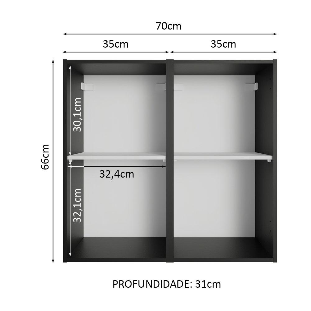 Armário Aéreo 70 cm 2 Portas Preto Reims Madesa