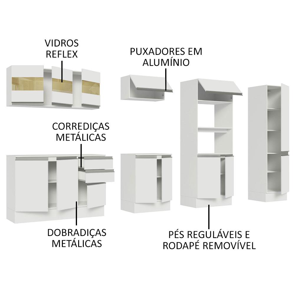 Armário de Cozinha Completa 100% MDF 300cm Frentes Branco Smart Madesa 02