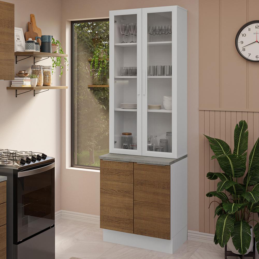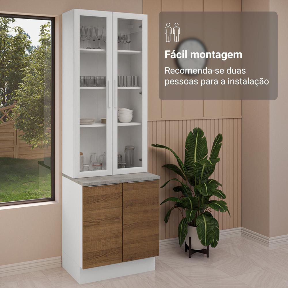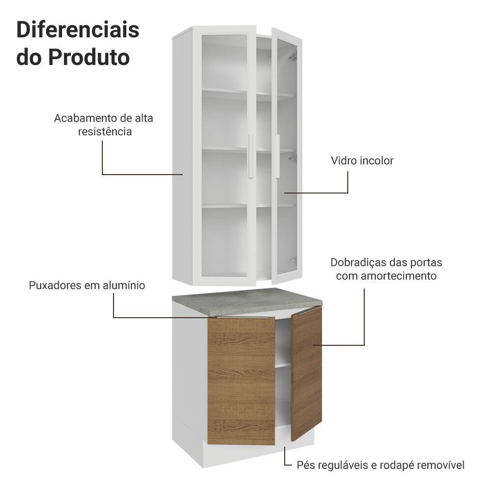 Kit Balcão + Cristaleira 70cm Branco/Rustic Stella Madesa 01
