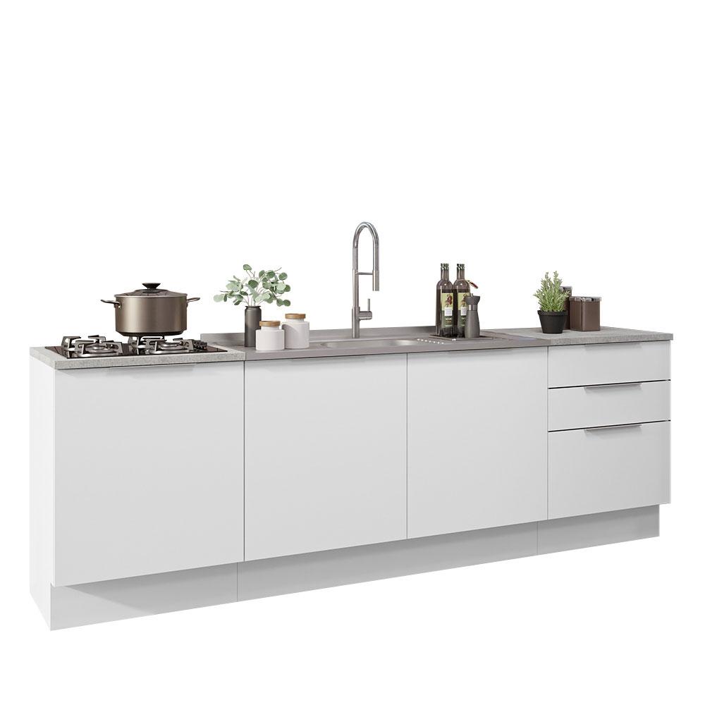 Armário de Cozinha Compacta 240cm Branco Stella Madesa 01