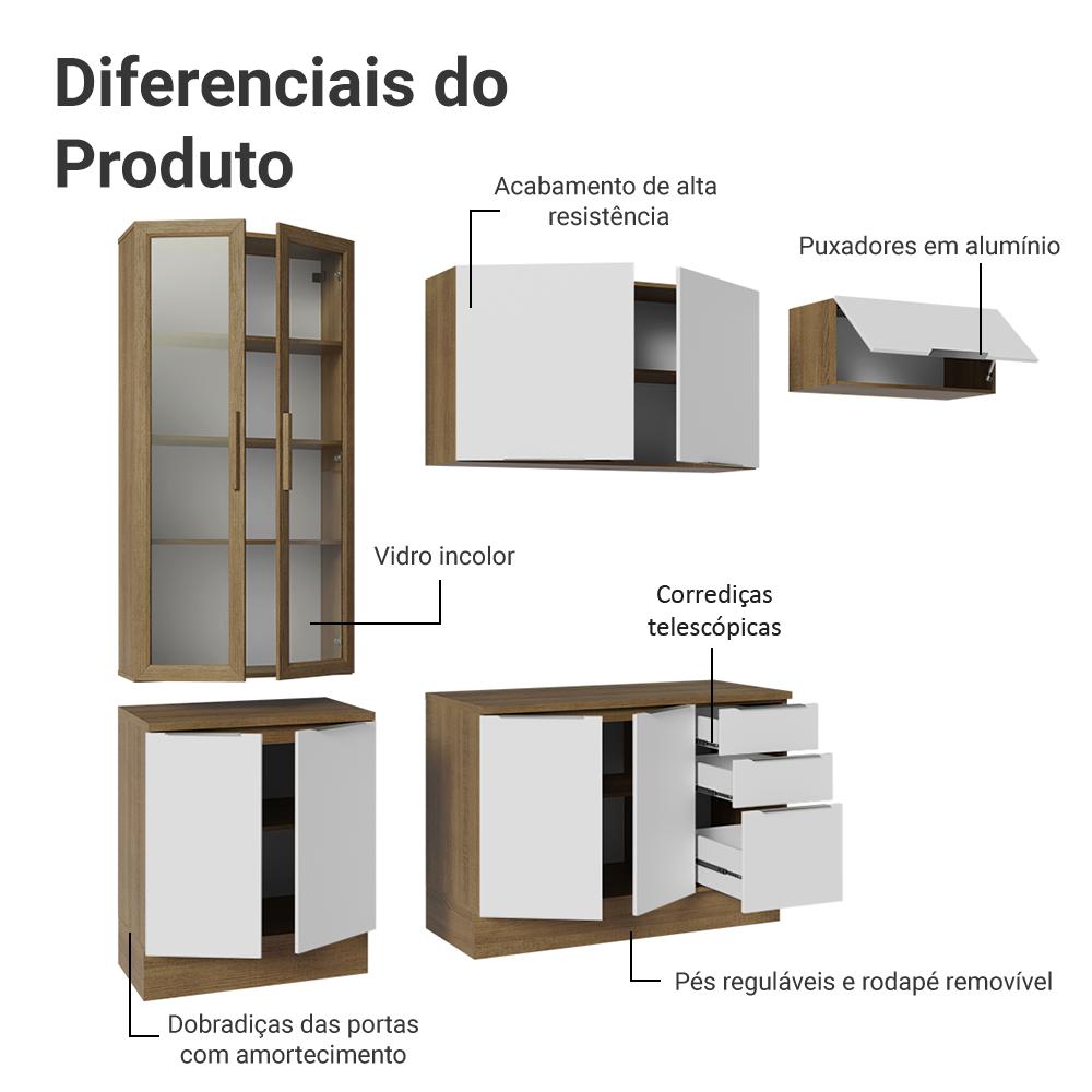 Armário de Cozinha Completa 270cm Rustic/Branco Stella Madesa 11