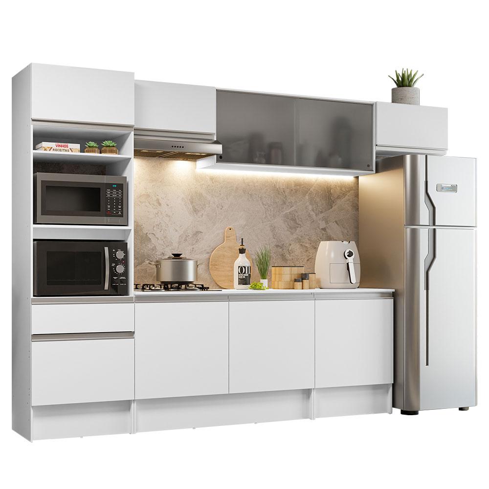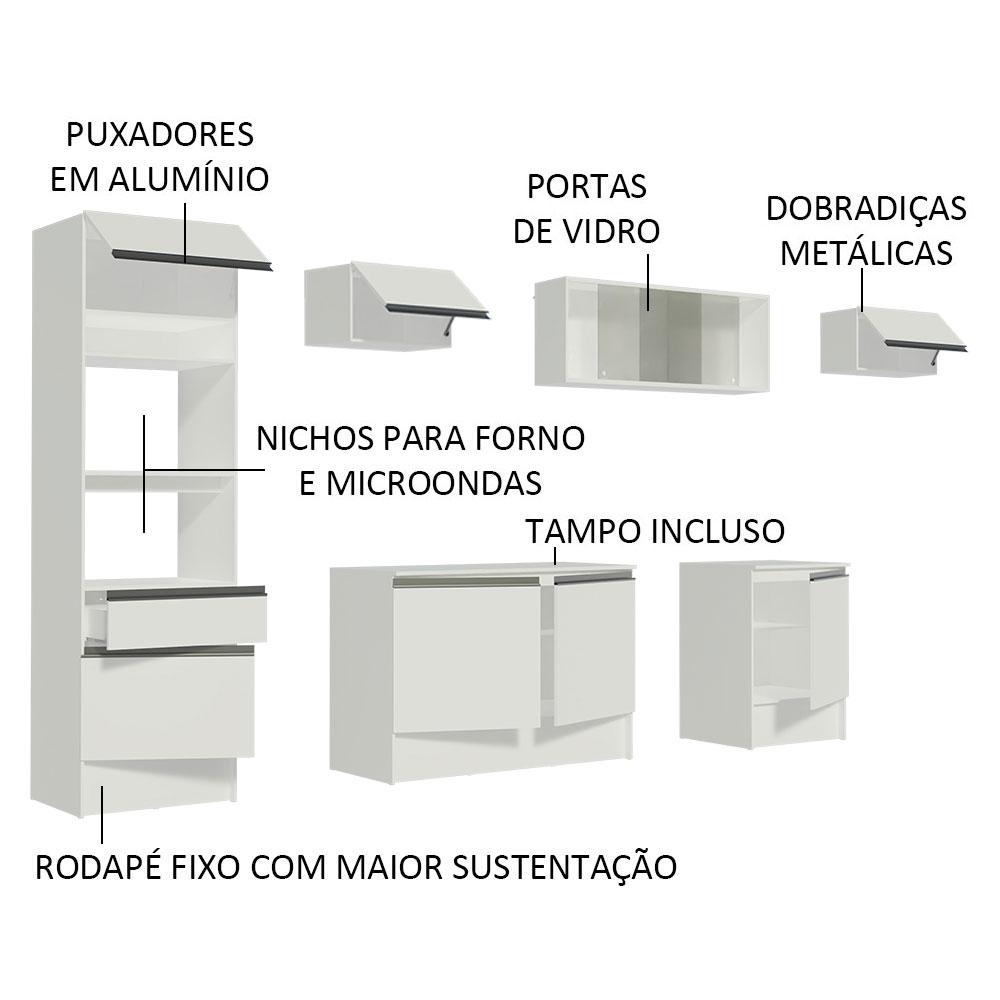 Cozinha Completa Madesa Topazio 300001 com Armário, Balcão e Tampo - Branco